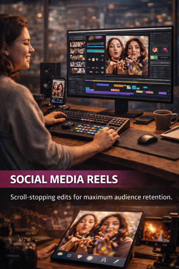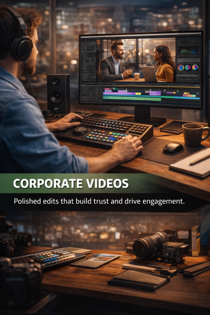 Professional Video Editing That Tells Your Story We transform raw footage into powerful visual experience sharp edits.Cinematic feel Audience Impact Get Your Video Edited We Craft VideosThat Connect & Convert •Premierepro •Photoshop • After effect • Divinci Resolve Our Video Editing Solutions See the Different in Every Time Before &After Showcase Let's Edit Something Amazing Your footage+ Our editing =auidence impact Get Pro Edit Now Our Editing Process Stabilization Subtitles Audio Editing Format Exports Footer / Quick Links Home Video Editing Motion Graphics VFX Contact